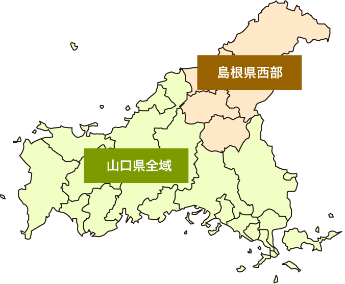 【山口県全域】山口市、下関市、宇部市、萩市、防府市、下松市、岩国市、光市、長門市、柳井市、美祢市、周南市、山陽小野田市、周防大島町、和木町、上関町、田布施町、平生町、阿武町
